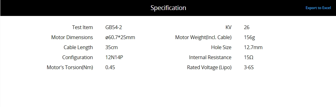 1 x T-MOTOR GB54-2 KV26 (kv, den Sie wählen)