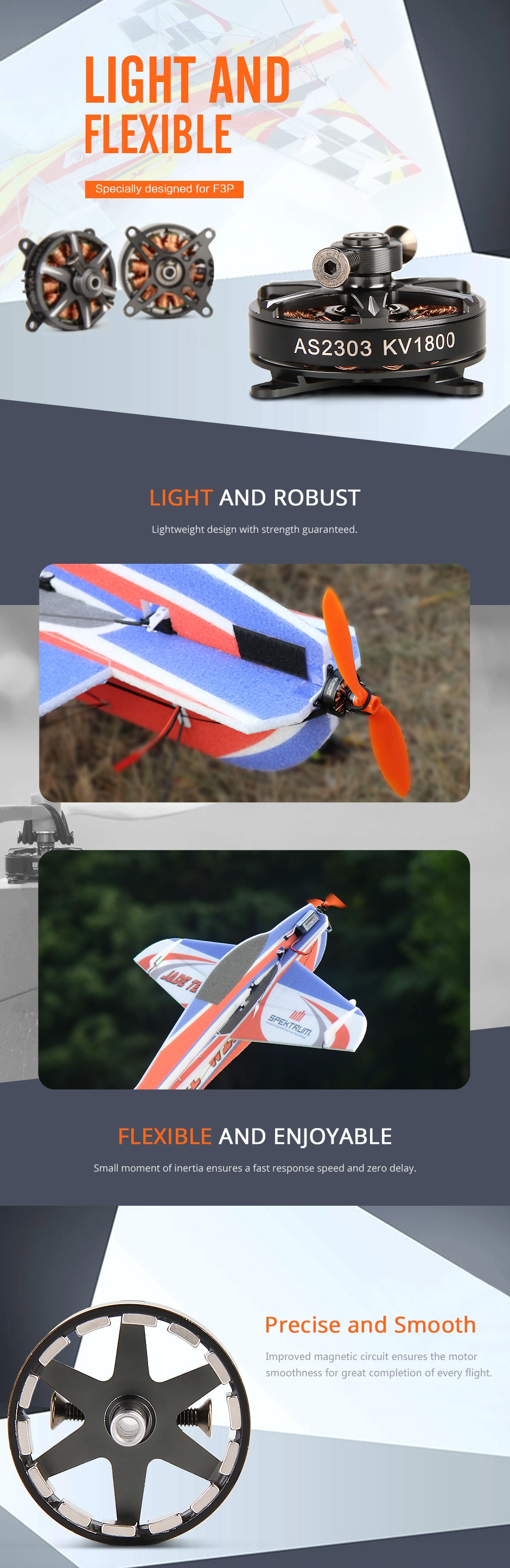 The T-Motor AS2303 short-shaft is a precision-engineered rc model motor designed for fixed-wing aircraft. As a high-performance fixed wing motor, it features a lightweight build that delivers agile flight performance. Its optimized magnetic circuits ensure smooth, responsive control, while durable construction and efficient power output make this lightweight brushless motor the ideal choice for training and F3P fixed-wing enthusiasts.