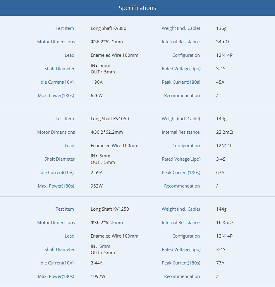 | Rated Voltage(Lipo) | 3-4S |