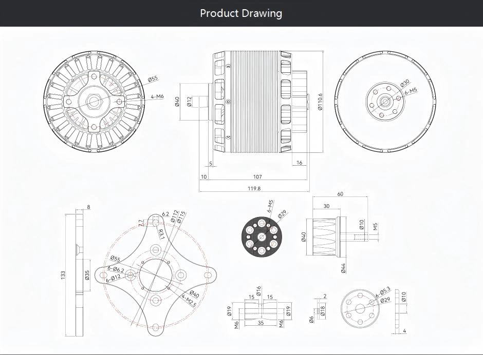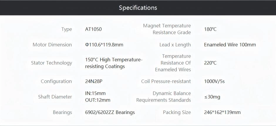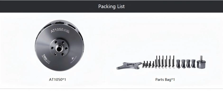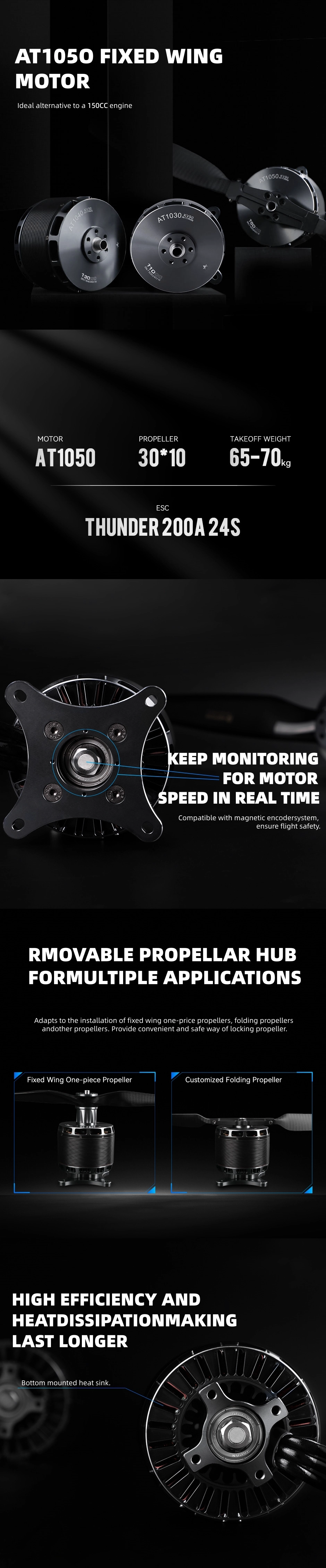 The T-Motor AT1050 is a professional high performance UAV motor dedicated to fixed-wing and VTOL UAVs. Equipped with a 24S power system, it provides max 8000W output and 36kg thrust to replace 150CC engines efficiently. With low noise, reliable cooling and versatile mounting, it works as a dependable stable flight motor and powerful large load drone motor for safe and heavy-lift operations.