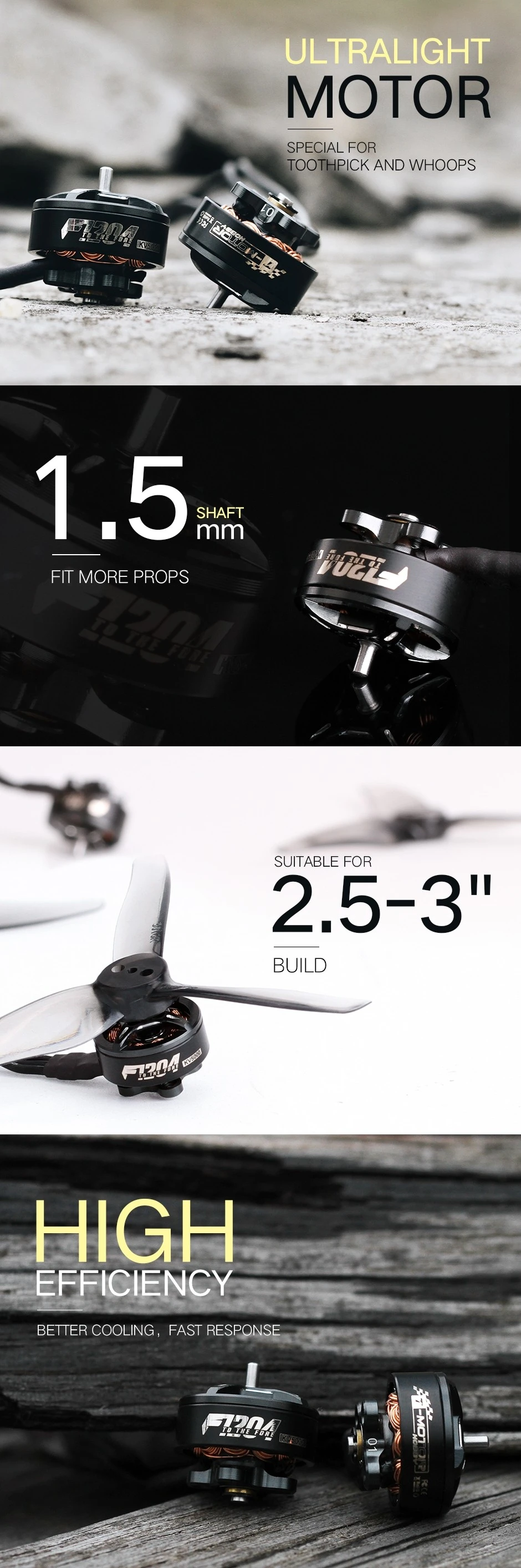 The F1204 FPV brushless motors from T-MOTORHOBBY are ultralight motors for micro drone builds, specially engineered for 2.5-3" toothpicks and whoops. As a flagship offering from a professional T-MOTORHOBBY FPV brushless motor factory and high-efficiency cooling FPV brushless motor exporter, this motor features a 1.5mm shaft that fits more props to unlock greater flight power.