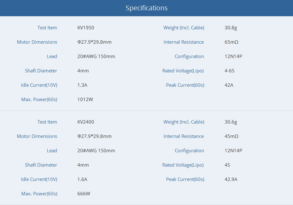 Available in 1950KV and 2400KV. Three colors to choose from: blue, gray and red
