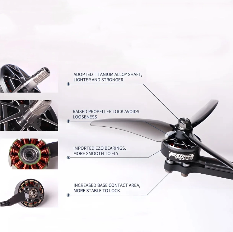 Built with premium materials, it features a lightweight titanium shaft, raised prop lock (prevents mid-flight loosening), and enlarged base contact area for stable locking—boosting performance and longevity. As a professional China Premium F40PROV Racing Drone Motor Distributor, we make this durable motor accessible globally.