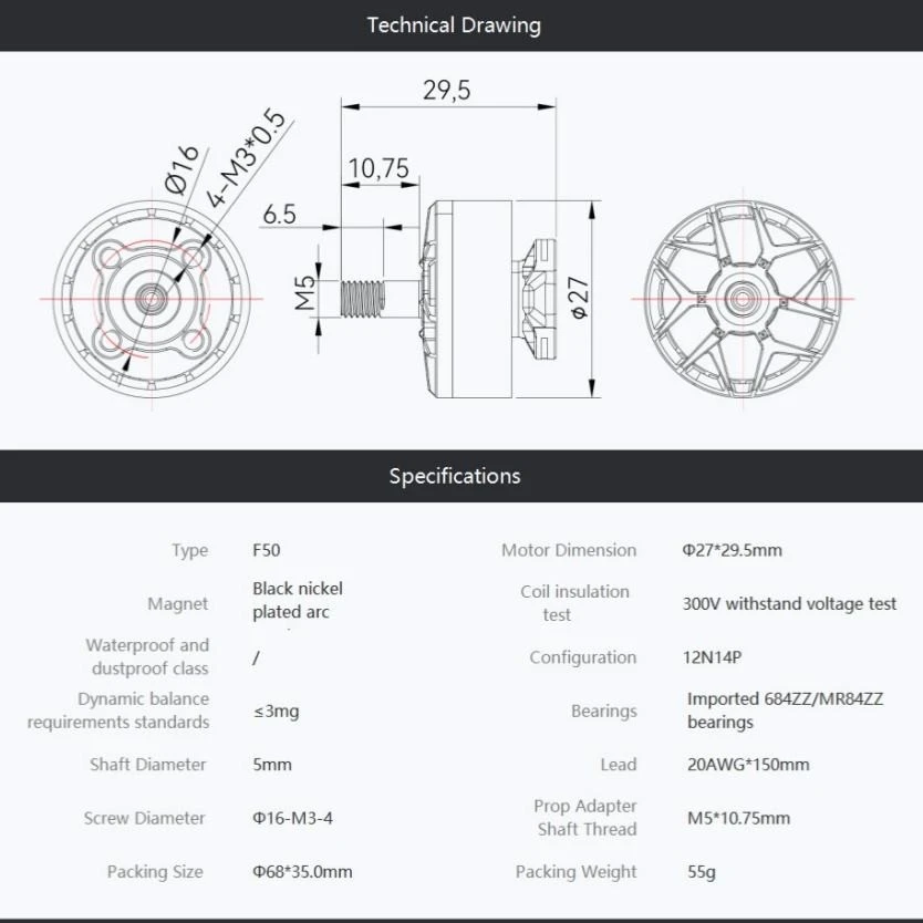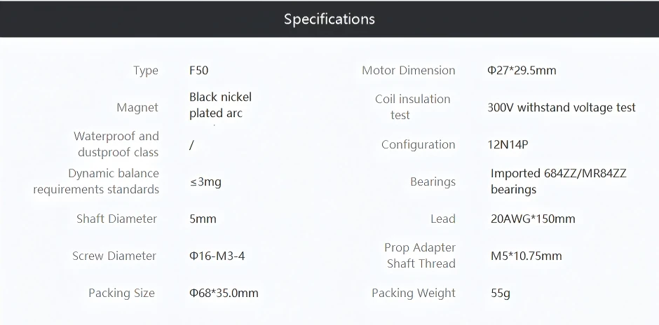 | Motor Size(mm) | Φ27*29.5mm |