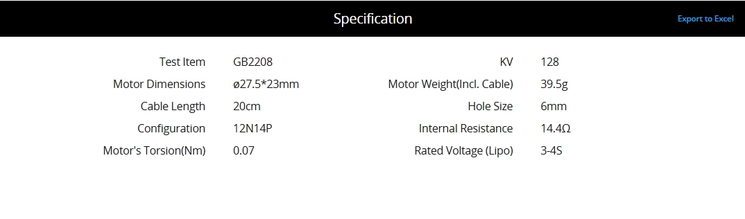 | Motor Weight(Incl. Cable) | 39.5g |