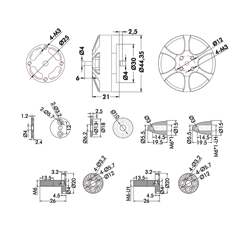 | Motor Size | Φ44.35×21mm |