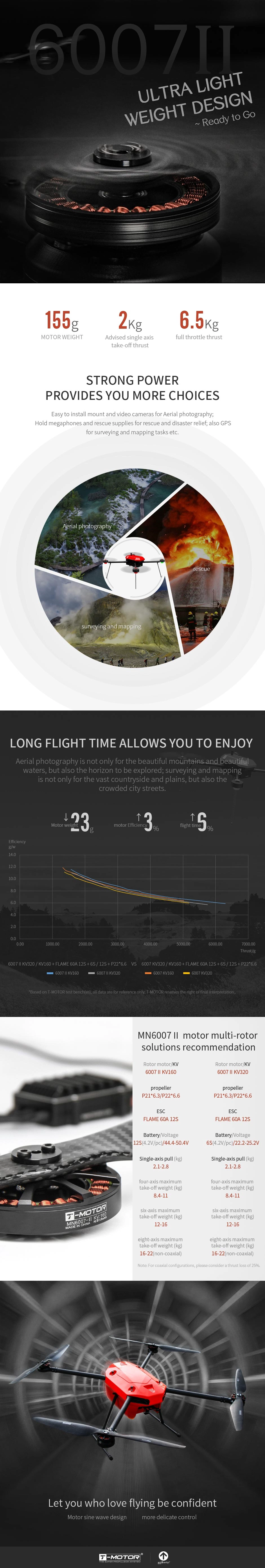 About T-MOTOR MN6007 II Multirotor VTOL UAV Motor KV160/KV320