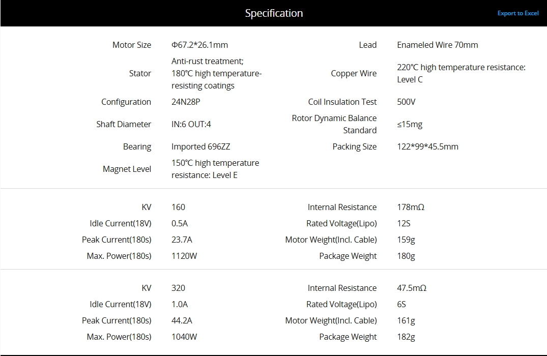 High-Qualityimported Materials; High Slot Space Factor On Winding For Longer, Clearer And More Stable Flight.