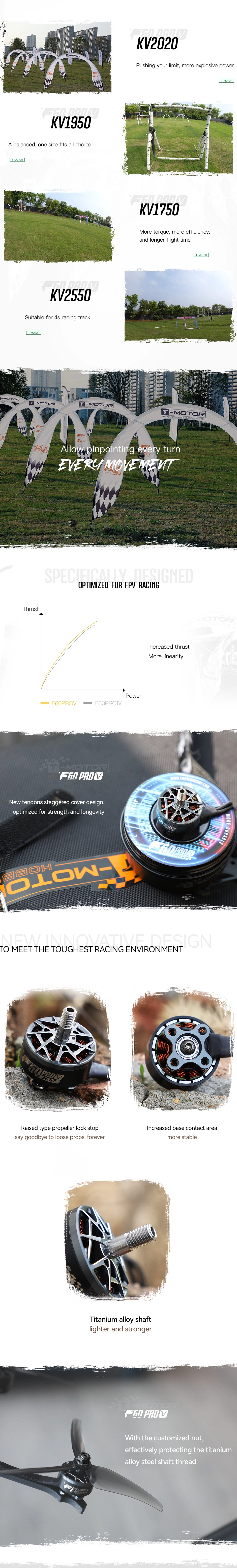 The T-MOTORHOBBY F60 line is advancing to Pro V series! As a professional china T-MOTORHOBBY F60 Pro V Racing Motor factory and china F60 Pro V FPV Drone Motor supplier, we're proud to present this high-performance china F60 Pro V 5-Inch FPV Racing Motor with 4 KVOptionstailor-made for 5-inch FPVdrones. It delivers increased thrust and more linearity, making it more powerful and durable than ever before.