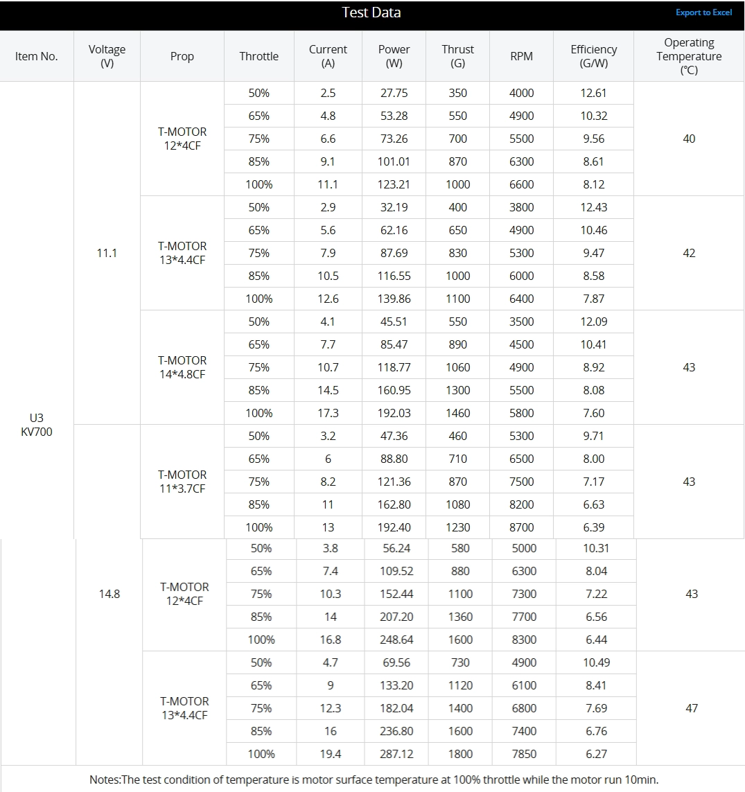 U3 KV700 motors (from U-series) are aimed for high end UAVs requiring big thrust.