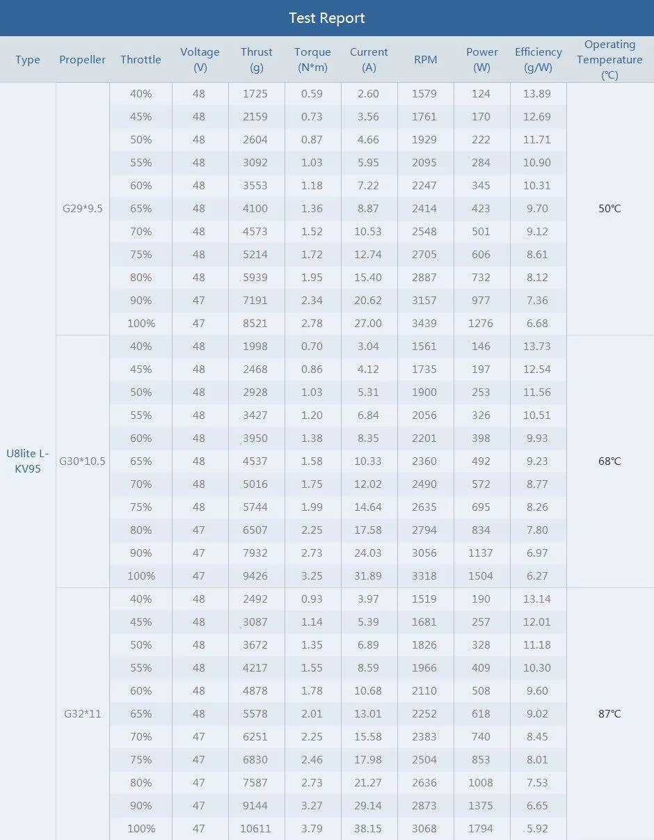 "U Efficiency" motors (from U-series) are aimed for high end UAVs requiring long endurance. This kind of UAVs are usually for surveillance, cruise, security and protection, surveying and mapping.