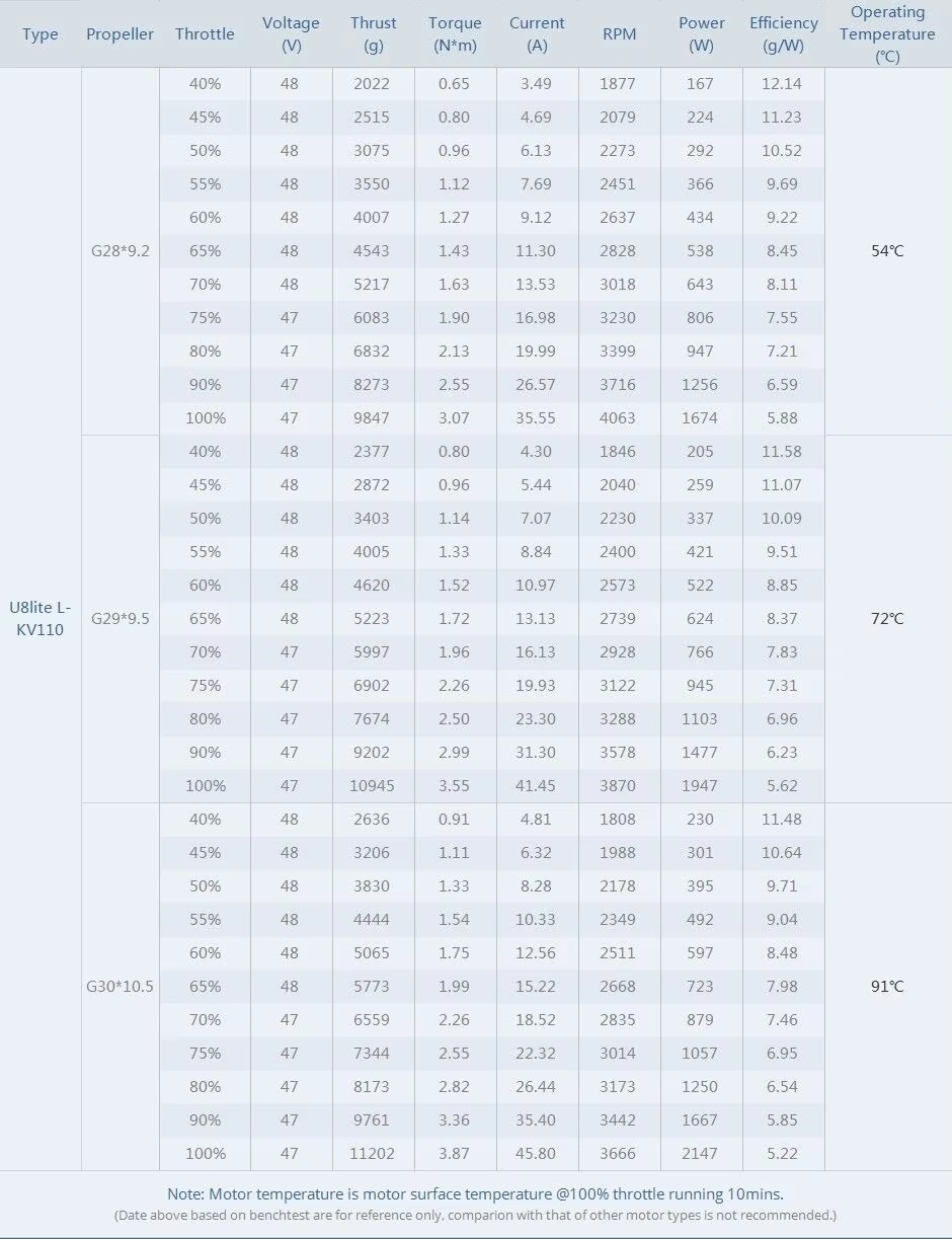T-MOTOR U8 Lite L delivers exceptional thrust up to 11.2kg with an ultra-light design for extended flight durations. Built with imported custom bearings, it features a redesigned structure tested for axial and radial stresses, ensuring a lifespan of 1,000 operational hours and up to 1,500 flights. Its advanced magnetic circuit matches the efficiency of the U8 Lite, offering unmatched power and reliability.
