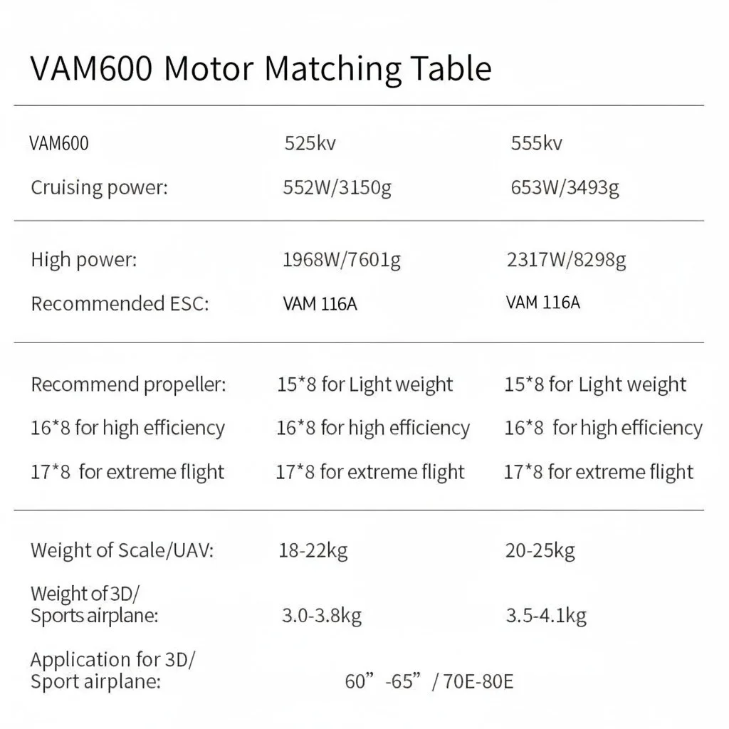 The VX-MOTOR VAM600 is a powerful motor for 3D models in the 60-65" category with a weight of 3-4Kg.