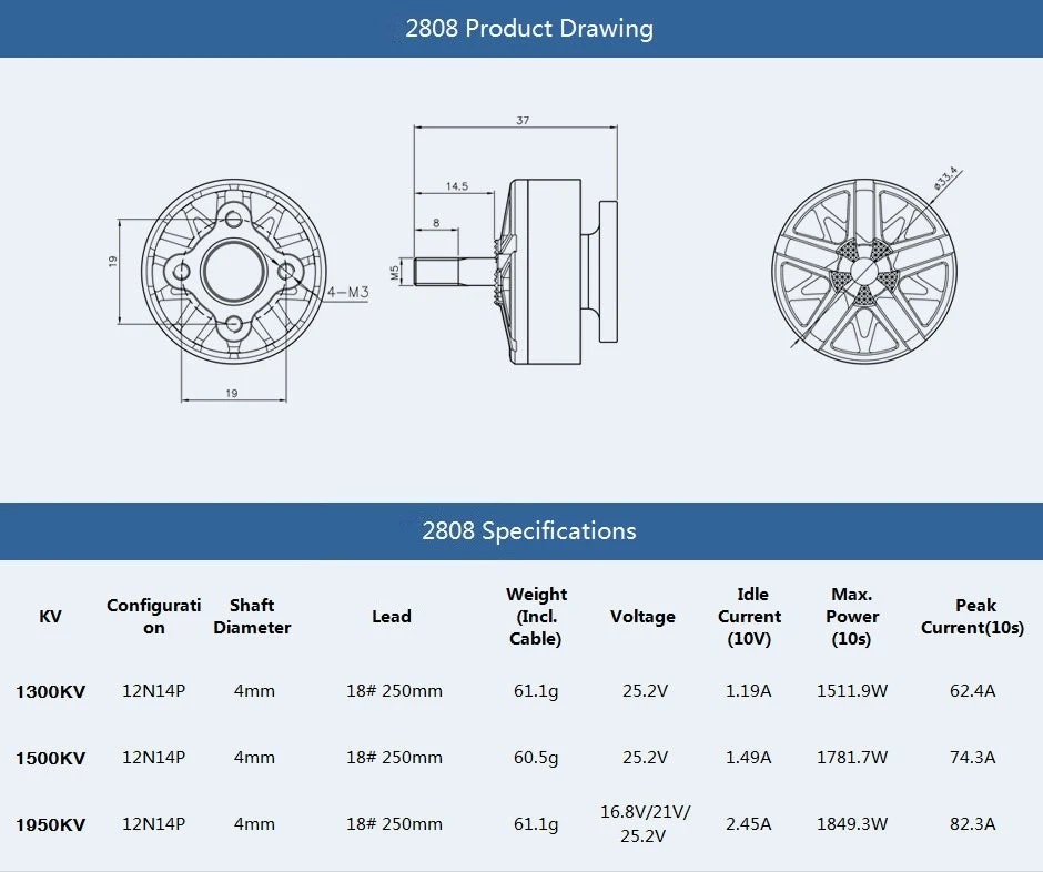 - Suitable 5 inch cinewhoop, 7 inch long range, 7 inch cinelifter builds